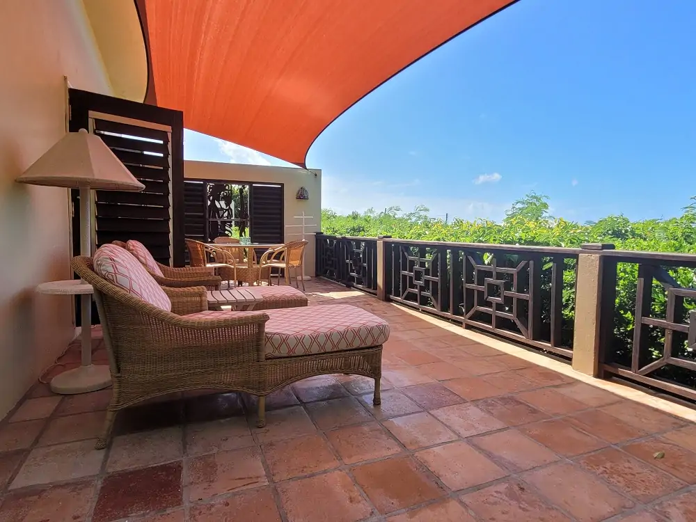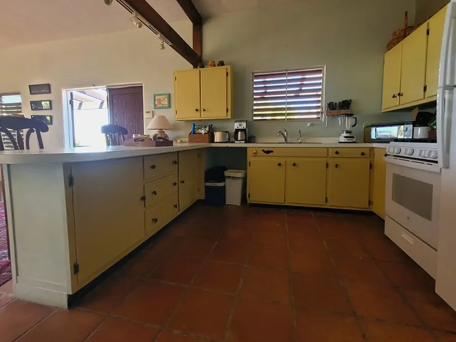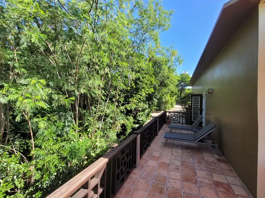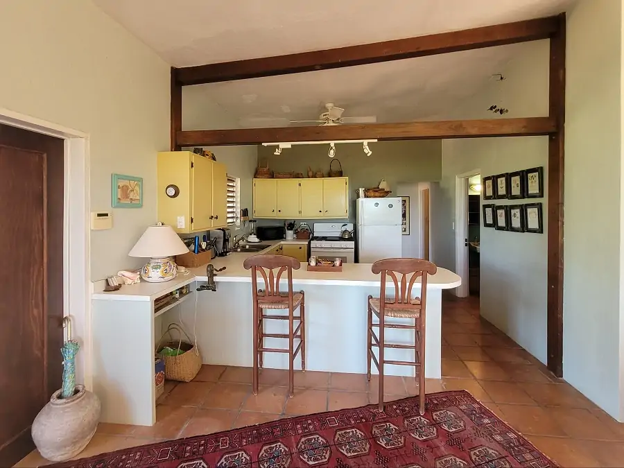 The second house, Chinaberry north of the courtyard, could be used as a standalone unit or guest studio with its own kitchenette. The spacious room doubles up as a bedroom/living area while a low-lying bathroom, three steps down, boasts a delicious outdoor shower. Chinaberry also has an inviting indoor/outdoor space with great views, and the entire house is enhanced by the terracotta tiles.
