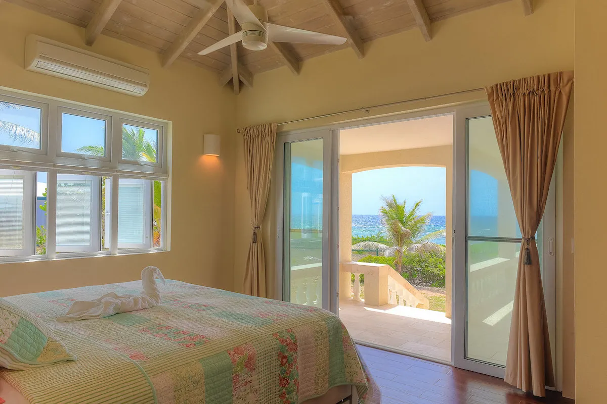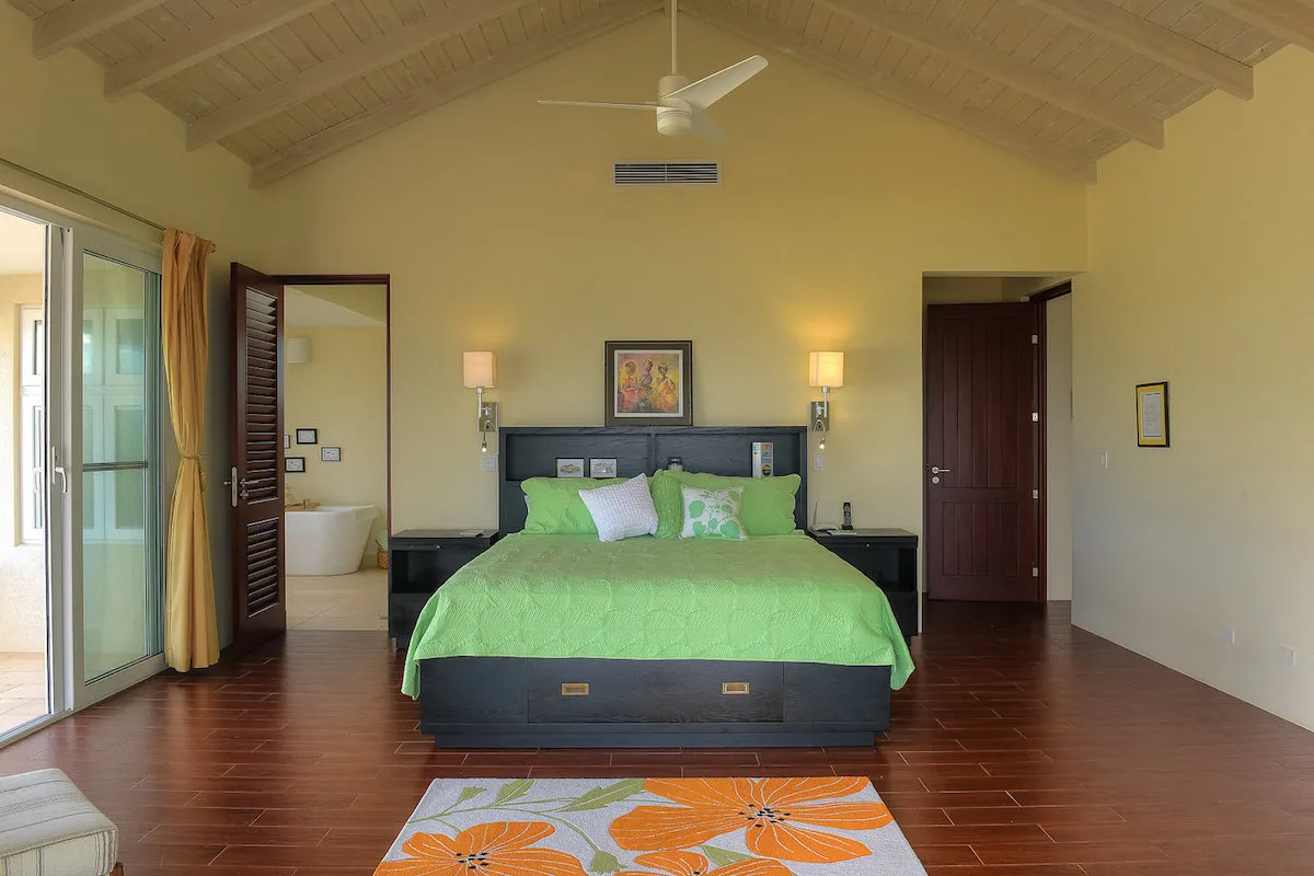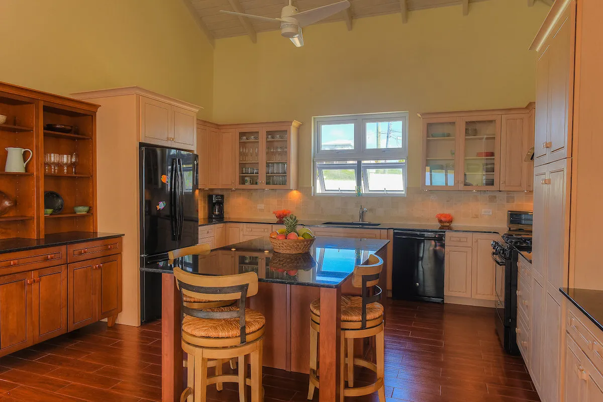 Villa Kai is located in the Sandy Hill area on Long Pond Bay, with easy access to the coastline. The whole house is screened, and there’s air-conditioning in the bedrooms.