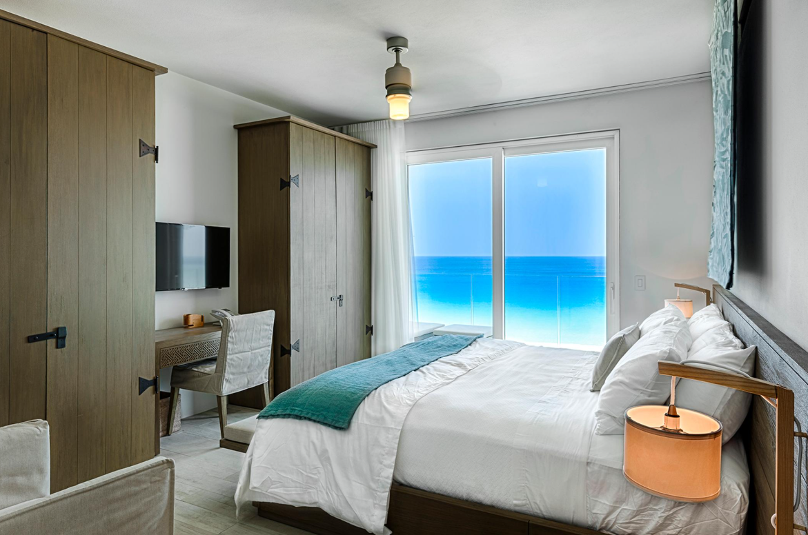 Floor to ceiling windows and glass balconies mean guests can enjoy uninterrupted views of the dazzling seascape from every angle at this elegant home. There are five double bedrooms with king-sized beds and ensuite bathrooms as well as a larger master suite. There’s a guest kitchen as well as a second chef’s kitchen, where private cooks can prepare a banquet of delicacies while you relax in the swirling hot tub.