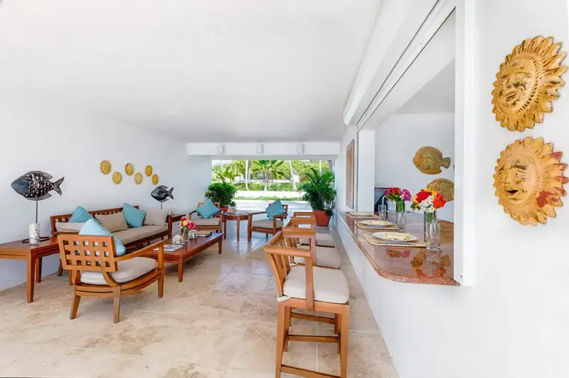 The villa boasts a German-manufactured MIELE kitchen with GE Monogram appliances and granite worktops which will please even the most discerning tastes-dining options include the formal indoor dining area that seats 8 or the outdoor covered dining pavilion that seats 12.