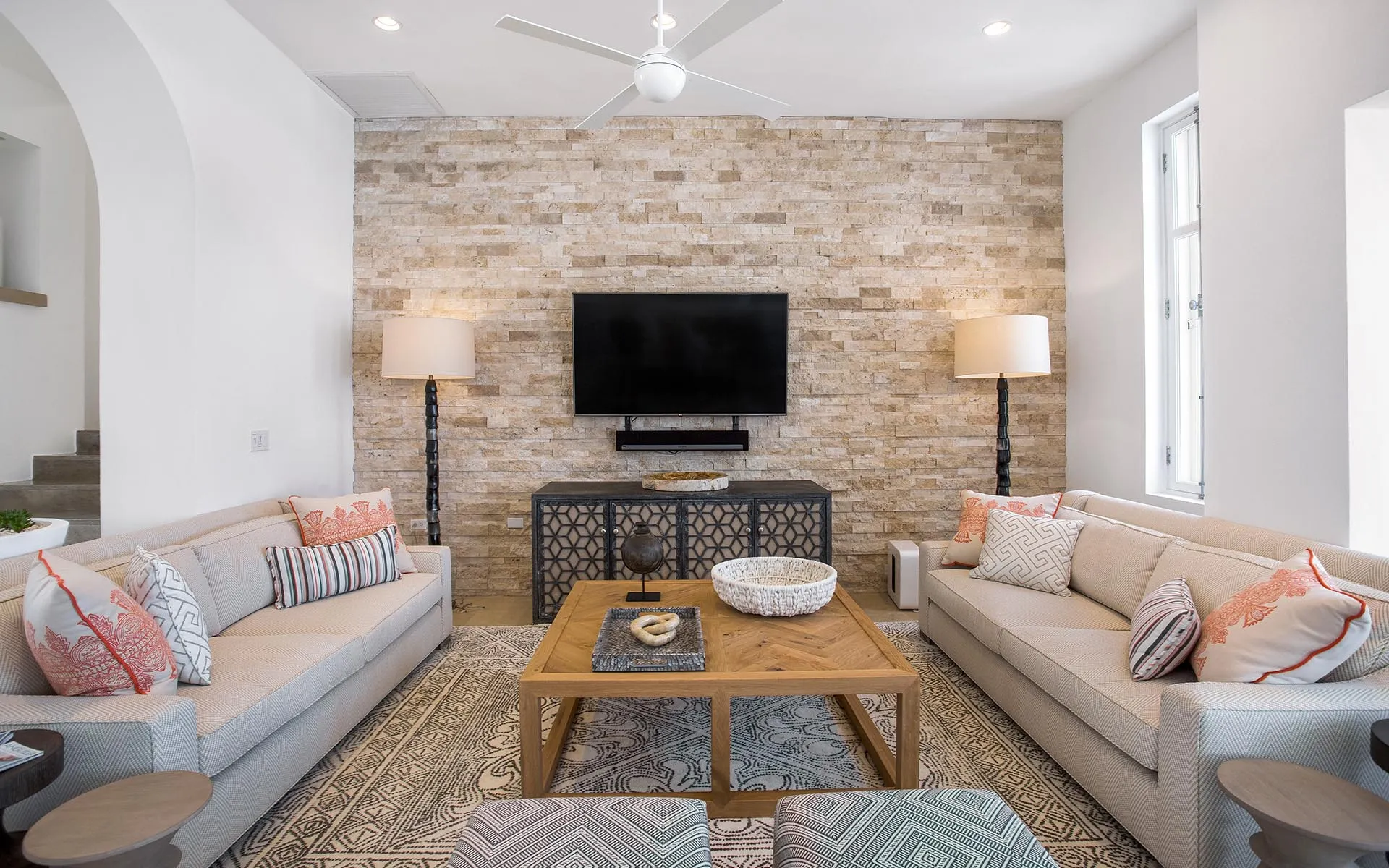 Modern, airy suites open out onto balconies with views of the turquoise sea, and downstairs are fabulous open-plan communal spaces and cosy nooks to relax in alone too. A neutral white palette provides the perfect backdrop for tropical colours and driftwood accessories, continuing the ‘paradise island’ feel.