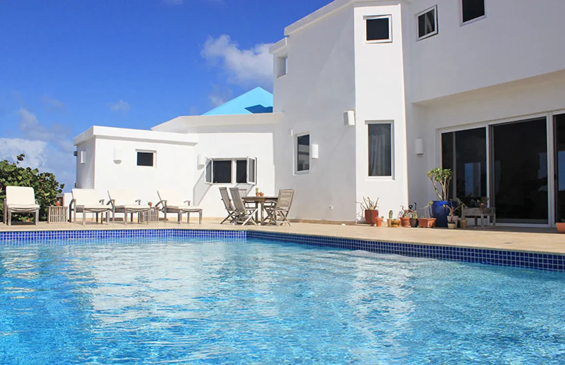 This is an fantastic two bedroom villa built on a 0.75 acre waterfront parcel in a quiet residential area. The property has unobstructed views of St. Martin and St. Barts and is well positioned to take advantge of the cooling trade winds through out the year. There is 6000 square feet of indoor and outdoor living space and the custom designed pool intentionally placed at the rear of the property to shelter it from the breeze and complete with its own Anguillian BBQ spot.