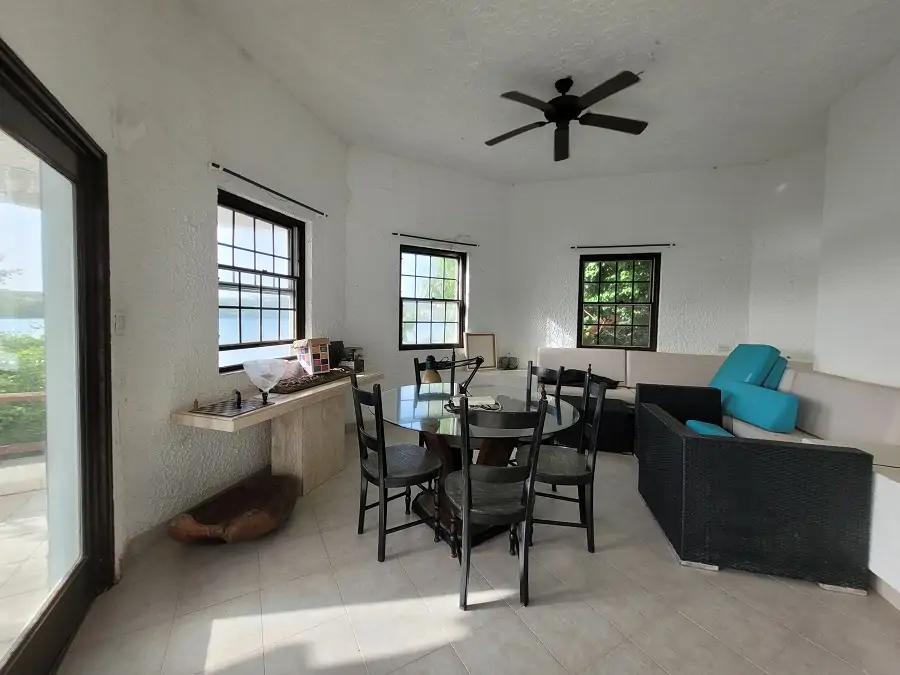 While essentially a two-floor house, Soto is deceiving in that it has many levels and mezzanines. The ground floor features an ample living room and a cosy bedroom with its own bathroom, which also communicates with the pool deck. A self-contained apartment on the ground floor has its own separate access while a flight of stairs leads from the pool deck to the mangrove and into the shallow waters of Little Harbour.