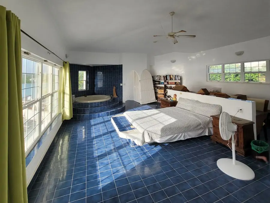 One of the first villas built in Little Harbour, Soto was conceived as a flamboyant three-bedroom enclave with an emphasis on hybrid spaces to make the most of the privileged site. The indoor/outdoor pool with a built-in bar is the most extreme example of this concept, though subsequent owners closed off the inner half of the pool, fitting panoramic windows on a low brick wall to enclose the perimeter of the building.